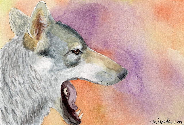 見やる狼 額縁付き